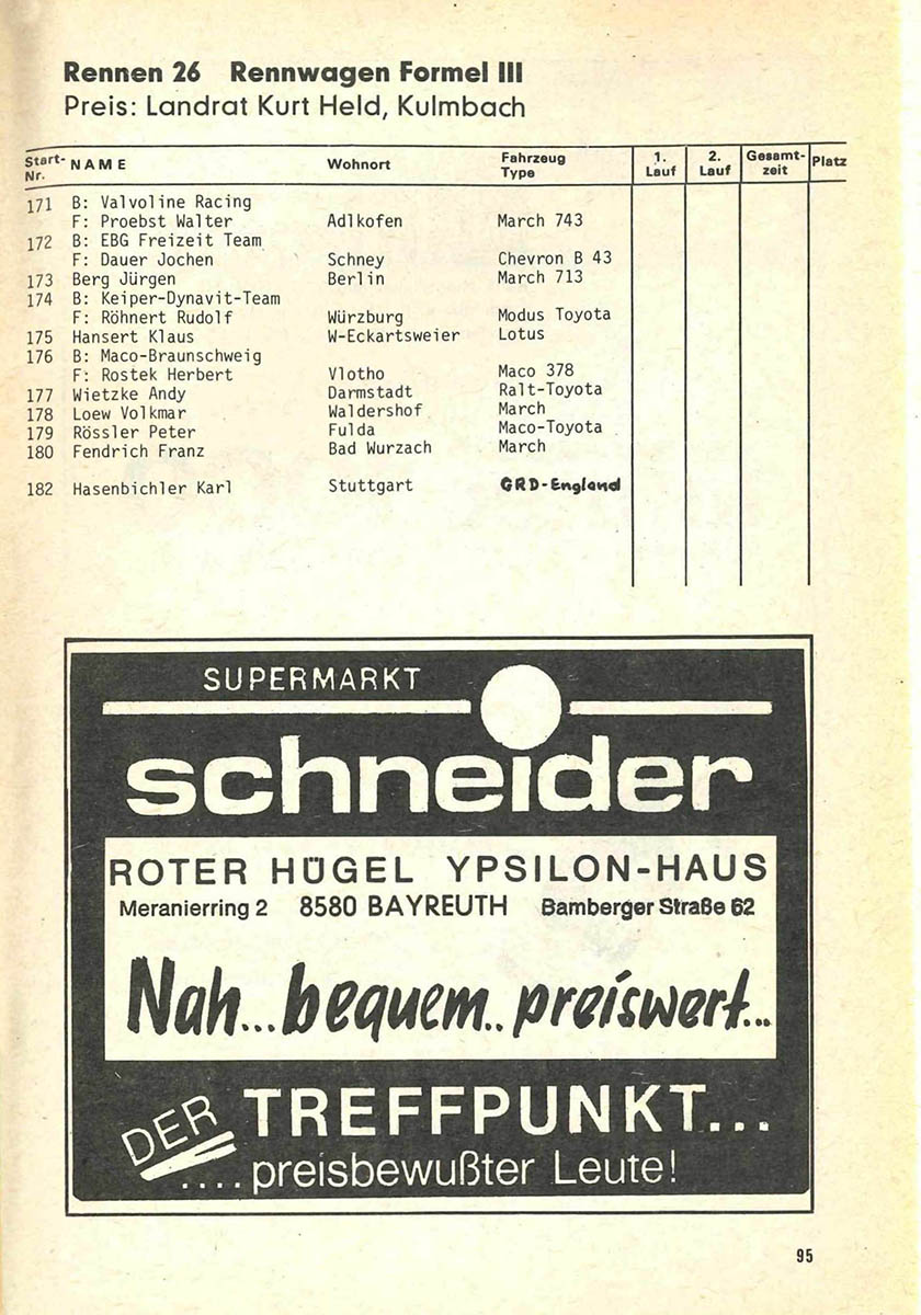 30.04.1978 - Frankenwald Streckenskizze Programmheft Starterliste Alle Ergebnisse: Nennungsliste Ergebnis Rennen