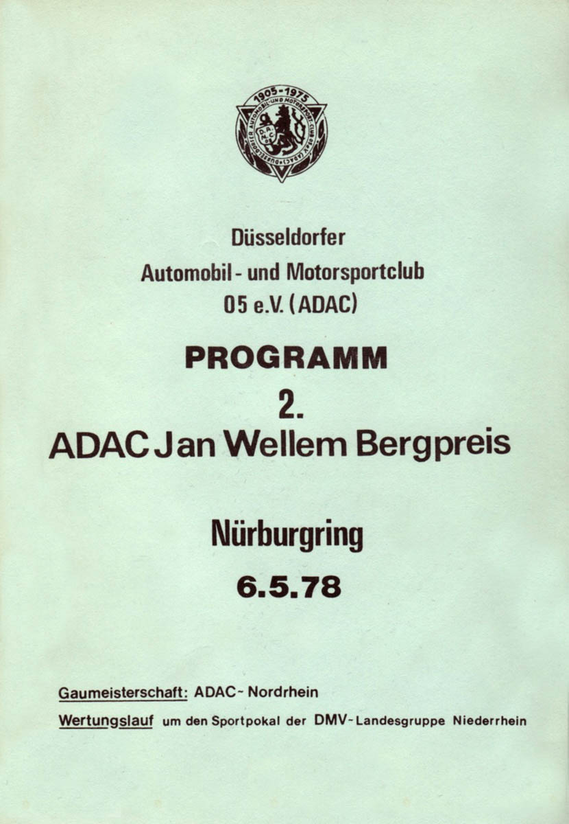 06.05.1978 - Nürburgring Berg Streckenskizze Programmheft Alle Ergebnisse: Nennungsliste Ergebnis Rennen
